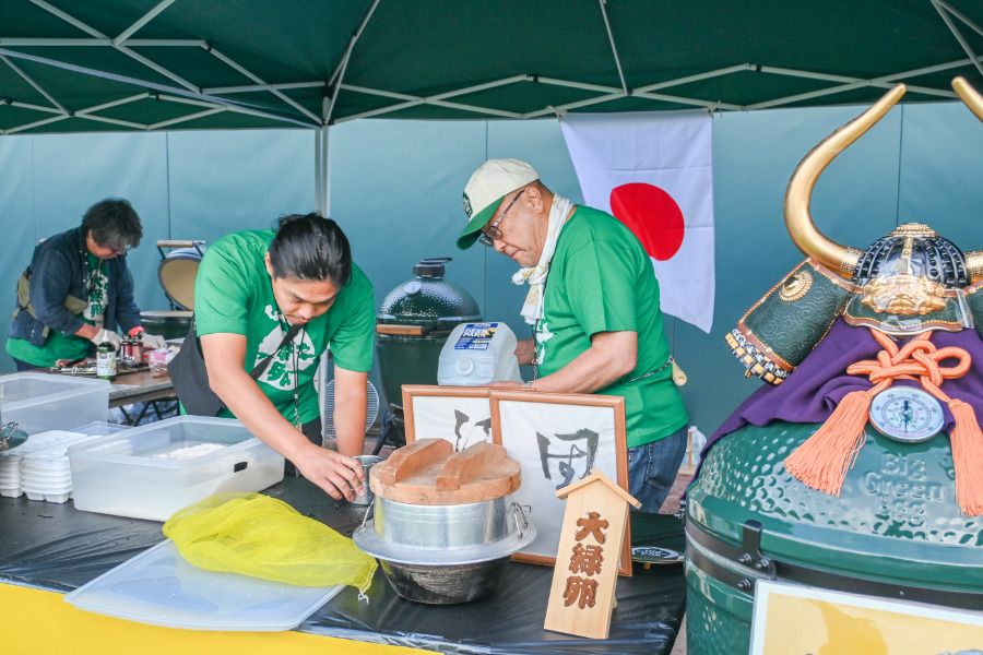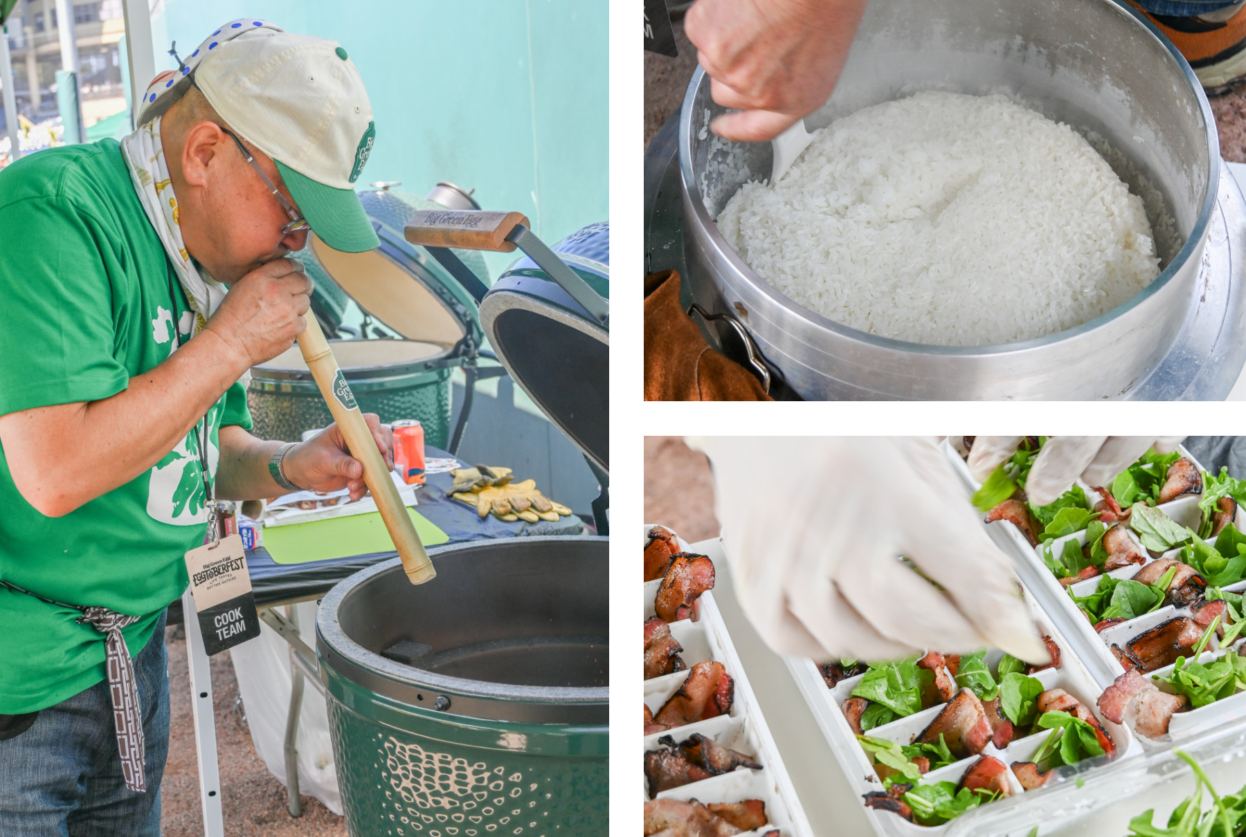早朝からBig Green Eggのテント内では料理人たちが所狭しと動き回るなか、我々KAMADO Qチームも準備開始です!